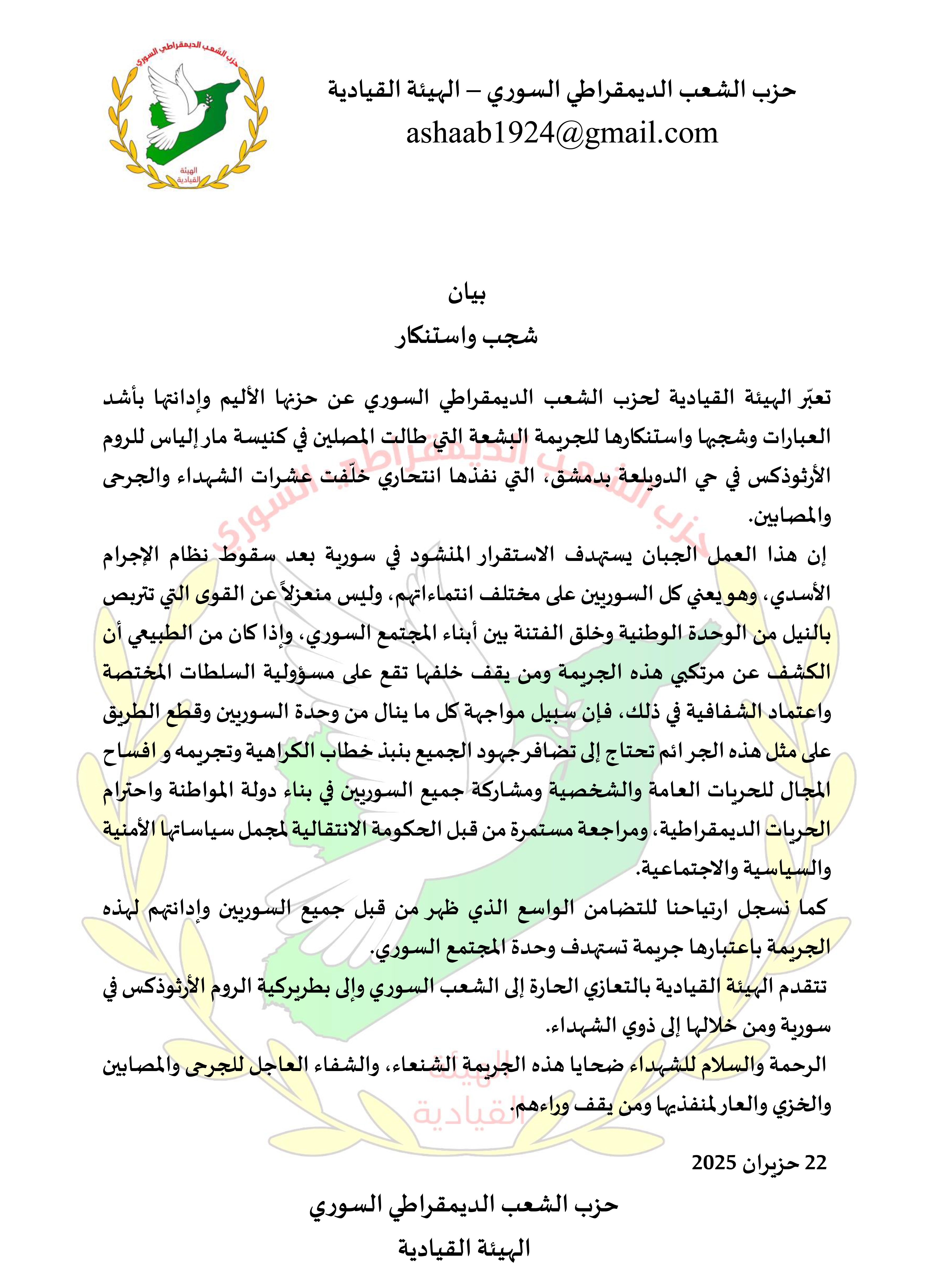 بيان إلى الشعب السوري في الذكرى السنوية الأولى للخلاص من منظومة الأسد إلى الأبد